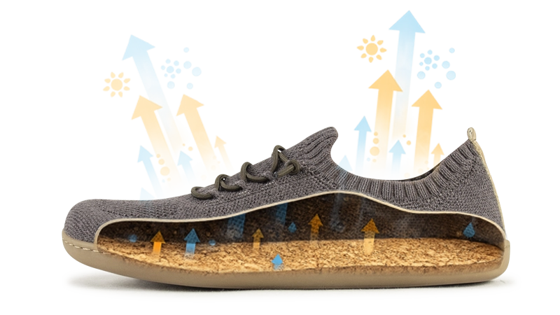 - 🧦 Gestricktes Merino-Obermaterial – flexibel wie eine Socke, mit schützender Sohle